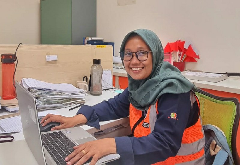 Desiana Pratiwi salah satu karyawan pabrik Aqua Tanggamus asal Pekon Teba, hanya berjalan kaki untuk menuju pabrik. Ibu dari dua anak ini, kini menempati posisi sebagai Logistic Supervisor Pabrik AQUA Tanggamus.