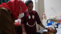 BANDAR LAMPUNG – Walikota Bandar Lampung Eva Dwiana Selasa 29 Agustus 2023 menjenguk korban kebakaran yang merupakan seorang ayah dan anak yang