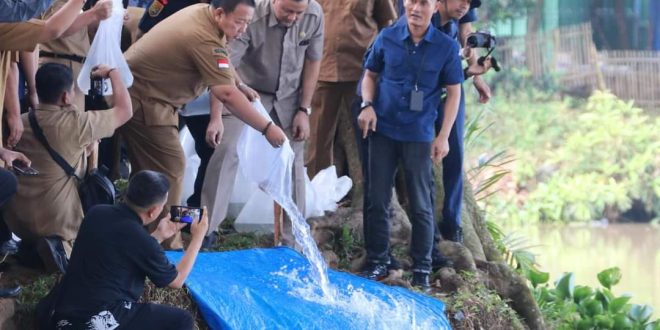 Adapun benih ikan yang ditebar sebanyak total 70.000 benih ikan, yang terdiri dari masing-masing 20.000 ekor benih ikan jelabat dan 50.000 ekor benih ikan baung.