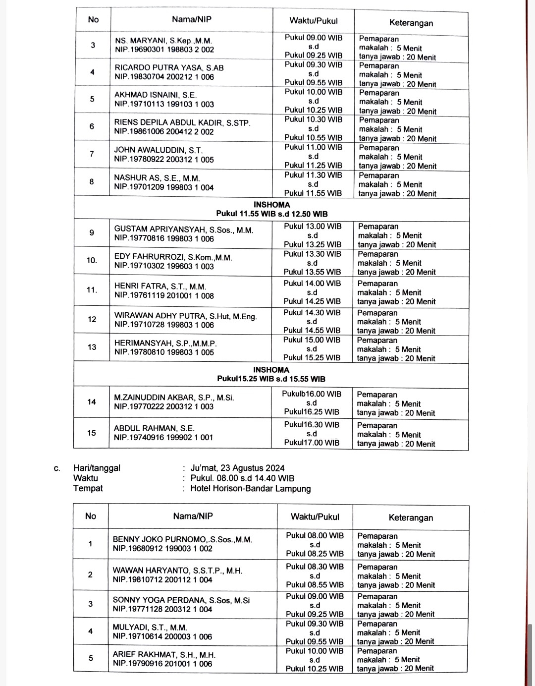 Semua peserta sudah selesai mengikuti tahapan, mulai dari tahapan seleksi administrasi dan uji kompetensi yang diikuti oleh 48 peserta, hinga tersisa 40 peserta yang akan mengikuti tahapan wawancara dan pembuatan makalah.