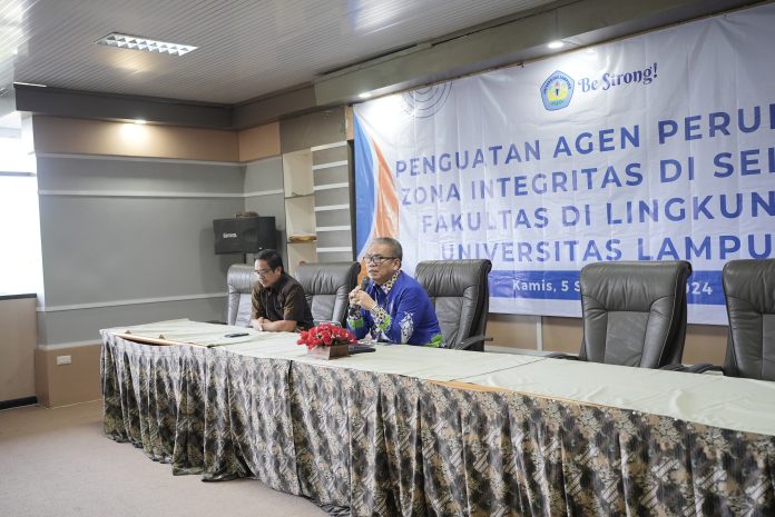 Grafiknews.com, Bandarlampung – Tim Reformasi Birokrasi (RB) Zona Integritas (ZI) Universitas Lampung (Unila) mengadakan kegiatan Penguatan Agen Perubahan Zona Integritas di seluruh fakultas di lingkungan Unila pada Kamis, 5 Desember 2024, di ruang sidang 1 lantai 4 Gedung Rektorat Unila.