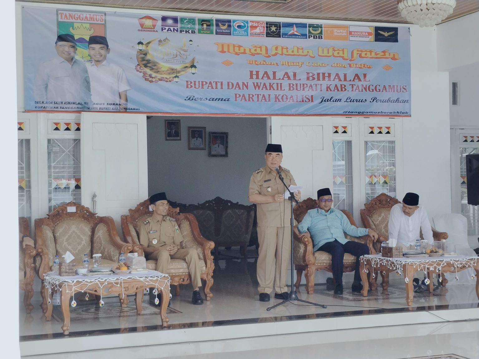 Grafiknews.com, Tanggamus – Bupati Tanggamus mengelar acara Halal Bihalal Partai Koalisi Jalan Lurus Perubahan, di Rumah Dinas Bupati Kotaagung. Selasa 8/4/2025.