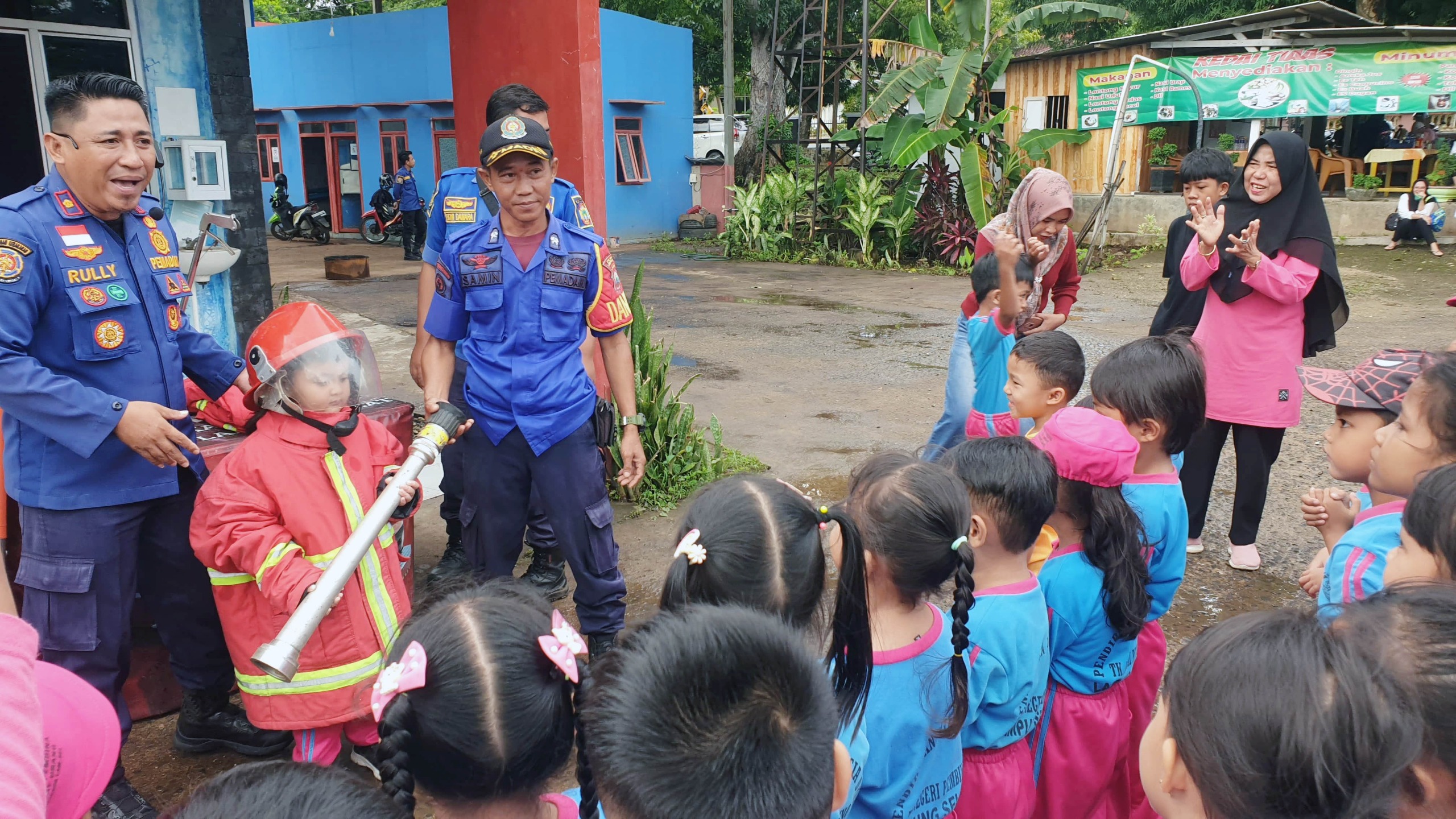 Kedatangan murid TK Negeri Pembina Kalianda yang dipimpin langsung Kepala Sekolah Hj. Mashuri, S.Pd, disambut Kepala Bidang Damkar dan Penyelamatan Kabupaten Lampung Selatan, Rully Fikriansyah. Mereka datang untuk belajar bagaimana petugas Damkar bekerja.