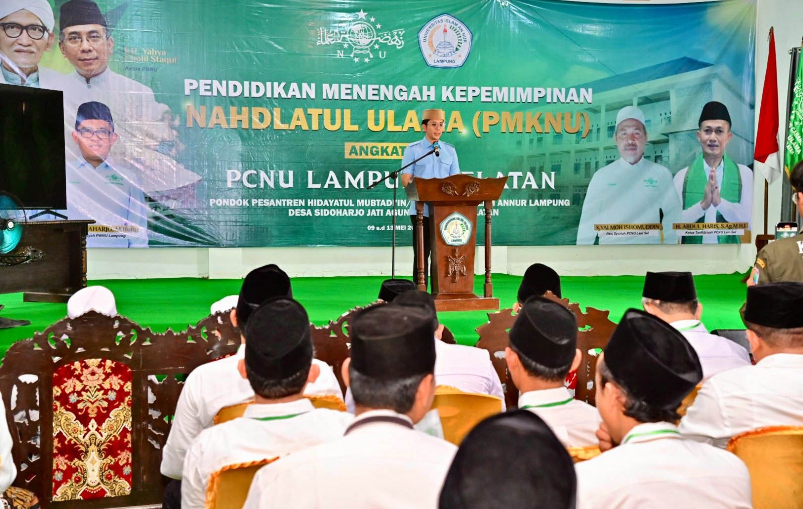 Grafiknews.com, Jati Agung – Bupati Lampung Selatan, Radityo Egi Pratama (Egi) membuka kegiatan Pendidikan Menengah Kepemimpinan Nahdlatul Ulama (PMKNU) ke-1, di Universitas An Nur Jalan Pesantren No 11 Sidoharjo, Kecamatan Jati Agung, Jumat (9/5/2025)