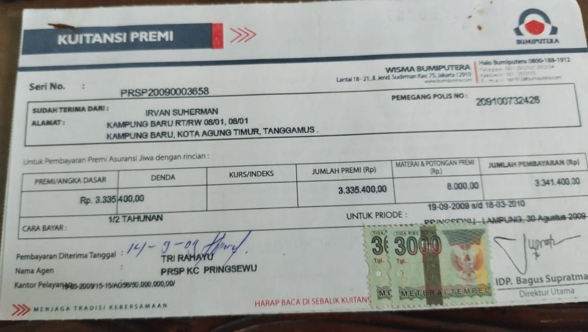 Nasabah Asuransi Bumiputera Cabang Pringsewu Lampung Keluhkan Sulitnya Klaim Pembayaran