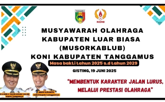 Grqfiknews.com | Tanggamus – Pemilihan Ketua Umum Komite Olahraga Nasional Indonesia (KONI) Kabupaten Tanggamus untuk periode 2025–2029 akan segera digelar melalui Musyawarah Olahraga Kabupaten Luar Biasa (Musorkablub) pada Kamis, 19 Juni 2025 di Hotel Royal, Kecamatan Gisting.