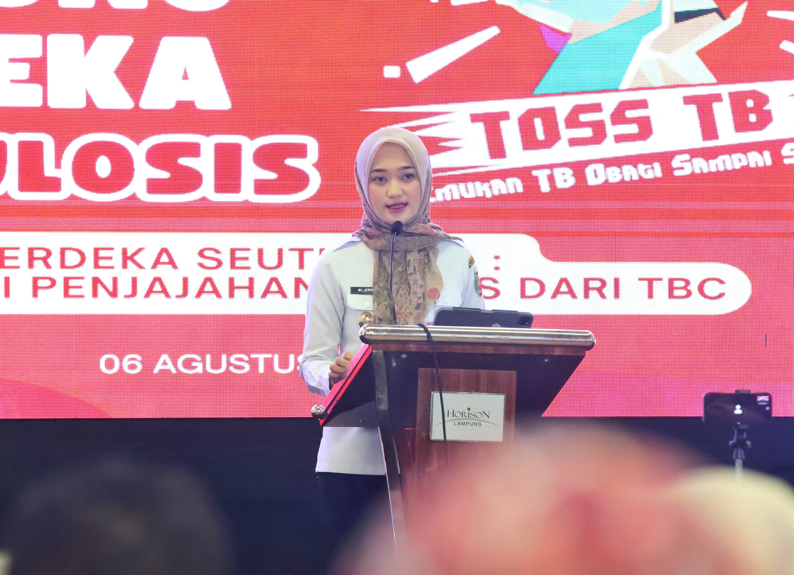 Wakil Gubernur Lampung, Jihan Nurlela, menghadiri langsung sekaligus meresmikan kegiatan sosialisasi Peraturan Gubernur Nomor 12 Tahun 2025 tentang RAD Penanggulangan TBC di Hotel Horison, Rabu (6/8/2025).