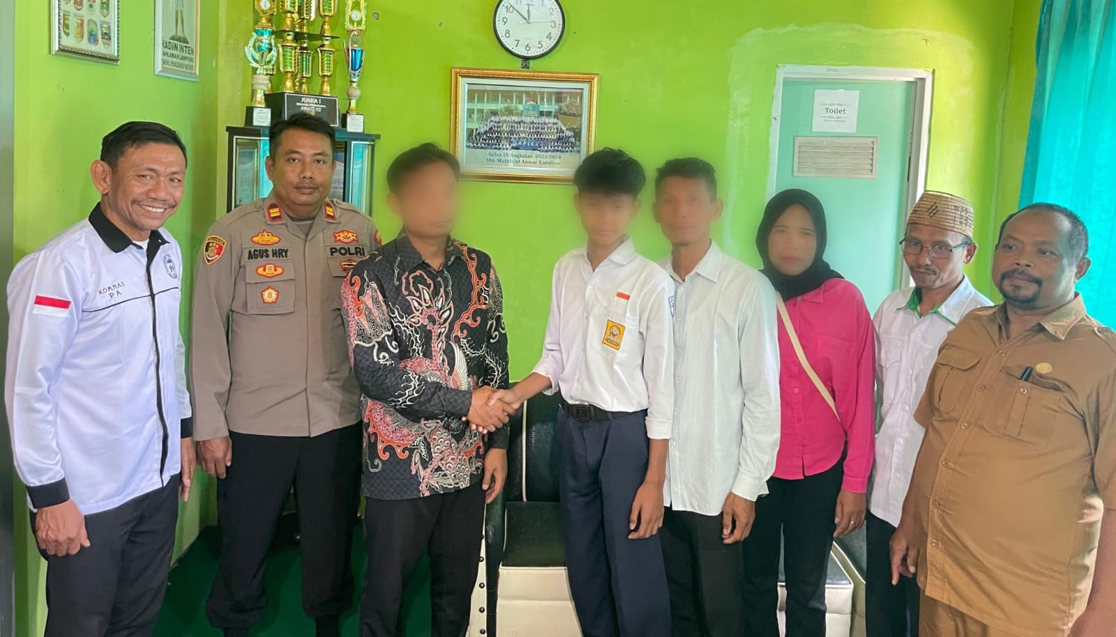 Pihak sekolah yang berada di bawah naungan Yayasan Mathlaul Anwar—diketuai mantan Bupati Tanggamus Samsul Hadi—telah memfasilitasi mediasi. Perdamaian tertulis antara keluarga korban dan GR dilakukan pada Senin, 29 September 2025, disaksikan aparat Polsek Talangpadang dan pihak sekolah.