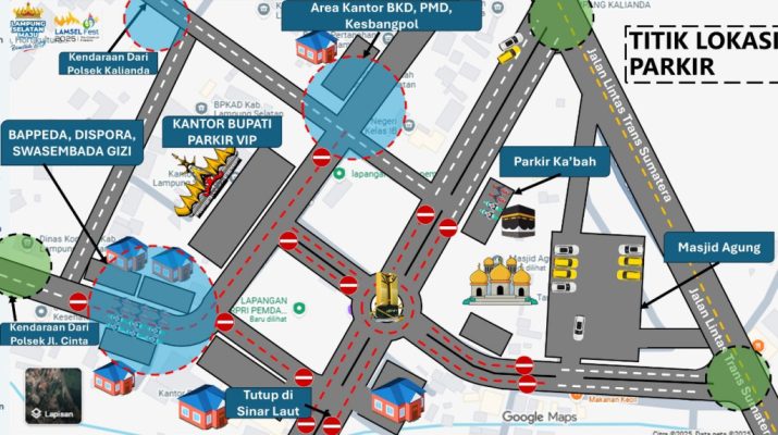 Pemerintah Kabupaten Lampung Selatan akan menerapkan rekayasa lalu lintas di sejumlah titik jalan sekitar area perkantoran Pemerintah Daerah (Pemda) setempat selama pelaksanaan Lamsel Fest 2025.